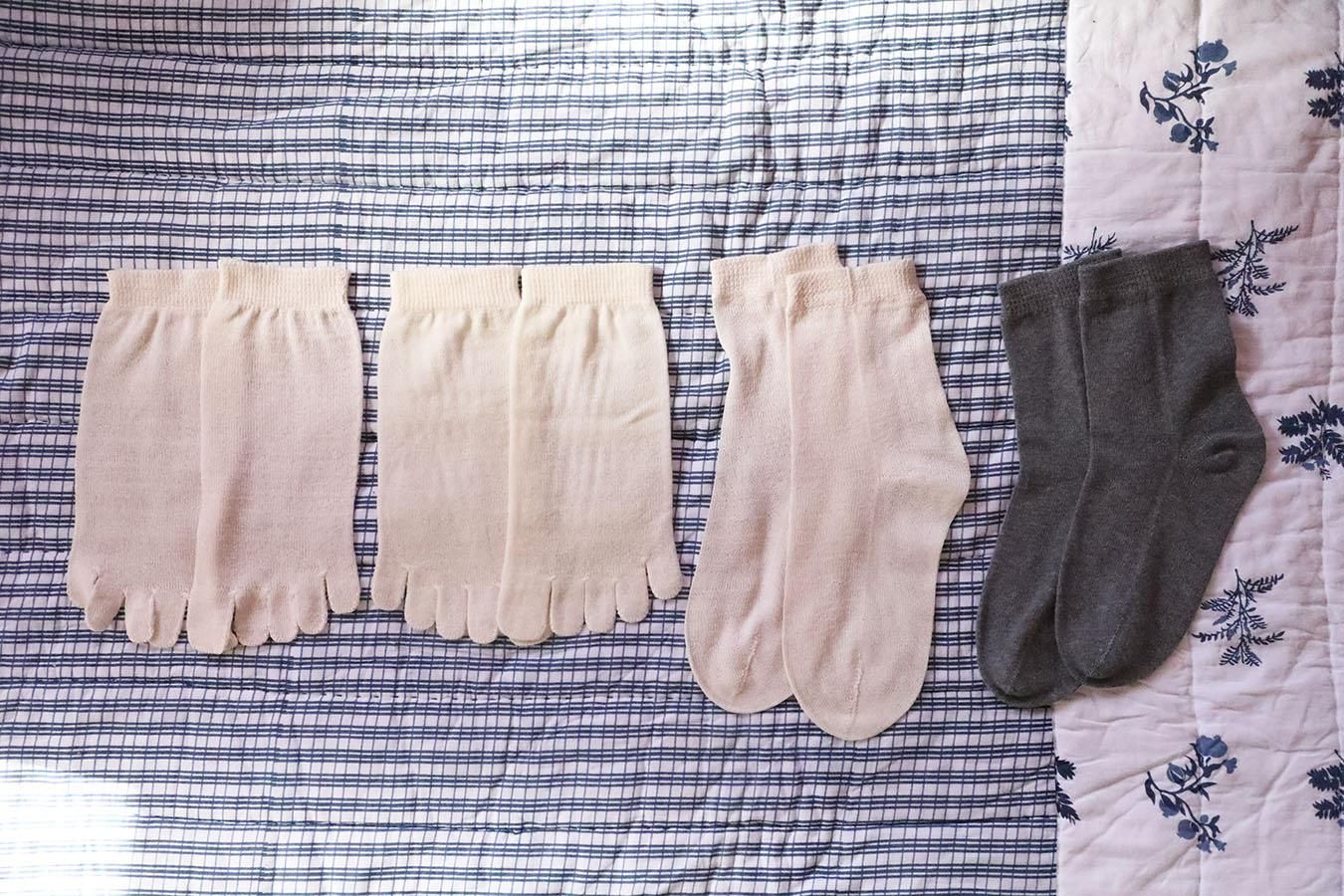 2枚目にウールの5本指靴下を履く4枚かさねばきセットです。