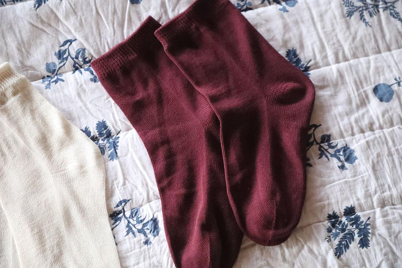 ・綿の先丸靴下 黒エンジ色(mmbs特注色 ※在庫なくなり次第終了)