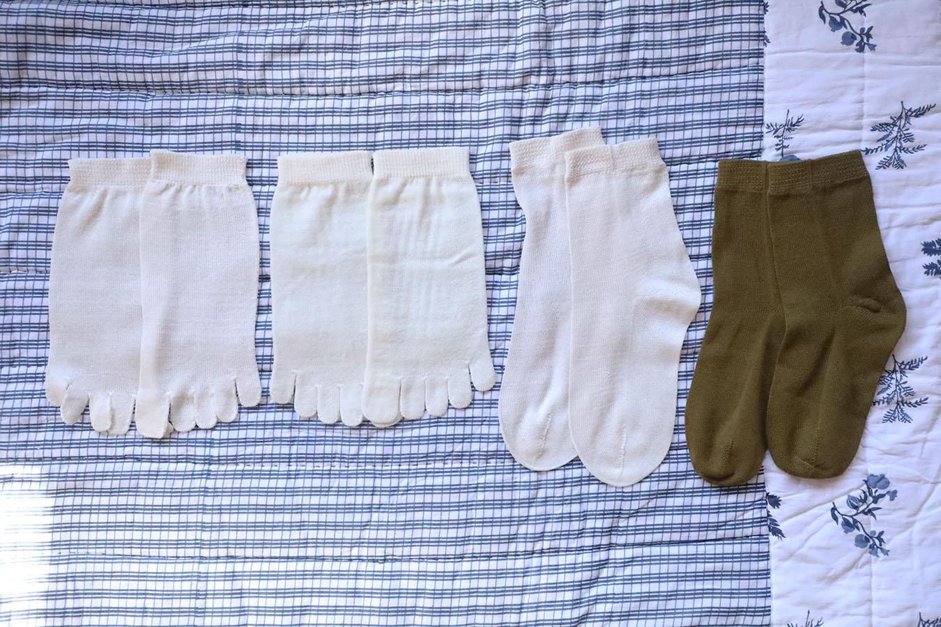 2枚目にウールの5本指靴下を履く4枚かさねばきセット